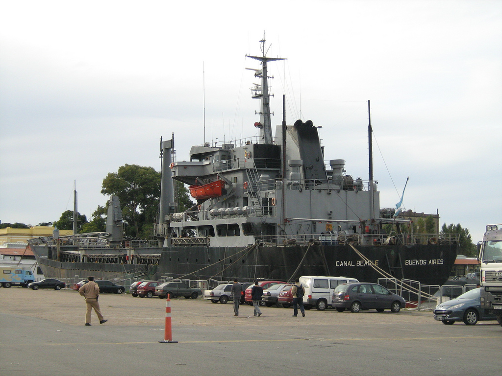 The cargo ship ARA Canal Beagle was launched in Buenos Aires. She was named after the Beagle Channel, a strait in Tierra del Fuego (an archipelago off the southernmost tip of the South American mainland). Canal Beagle was the first of three Costa Sur-class cargo ships built for the Argentine Navy to replace increasingly obsolete vessels in that military branch’s Naval Transport Service. The 393-foot-long Canal Beagle has a bulk cargo capacity of 340,000 cubic feet and a refrigerated cargo capacity of 7,400 cubic feet. In addition, the ship can carry up to 140 containers.