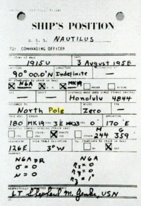 For additional information on the submarine’s historic crossing of August 3, 1958, please check out the article “Under the North Pole” in the October 1958 issue of All Hands magazine at http://www.navy.mil/ah_online/archpdf/ah195810.pdf.