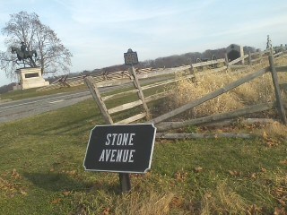Roy Stone had served in the Union Army during the Civil War and, on the first day of the Battle of Gettysburg in July 1863, he and his Pennsylvania Bucktail Brigade held off invading Confederate forces at McPherson’s Ridge. The road in that section of the battlefield had been named Stone Avenue in his memory, but the sign noting this designation disappeared at some point.