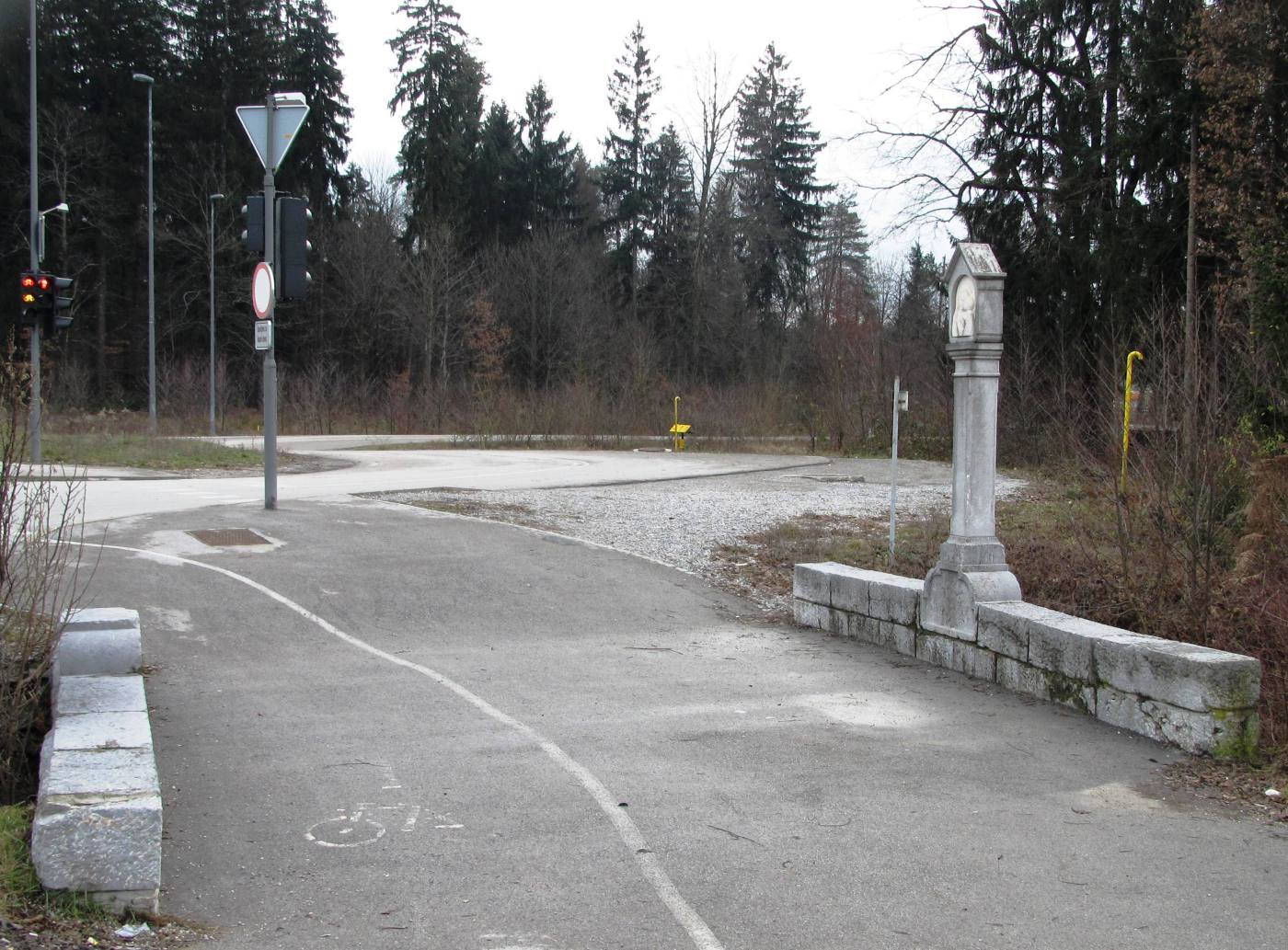 Over the course of the next several decades, the Kavšek Bridge was used for motor vehicle traffic. In 1985, however, the aging bridge collapsed. The walls for the new version were built to look like the previous walls as much as possible. This process included recreating the religious image that Vodnik made for the original bridge. A sculptor named Julijan Renko carved that replica of the image, and it can now be seen on a column atop the southern wall of the current Kavšek Bridge.