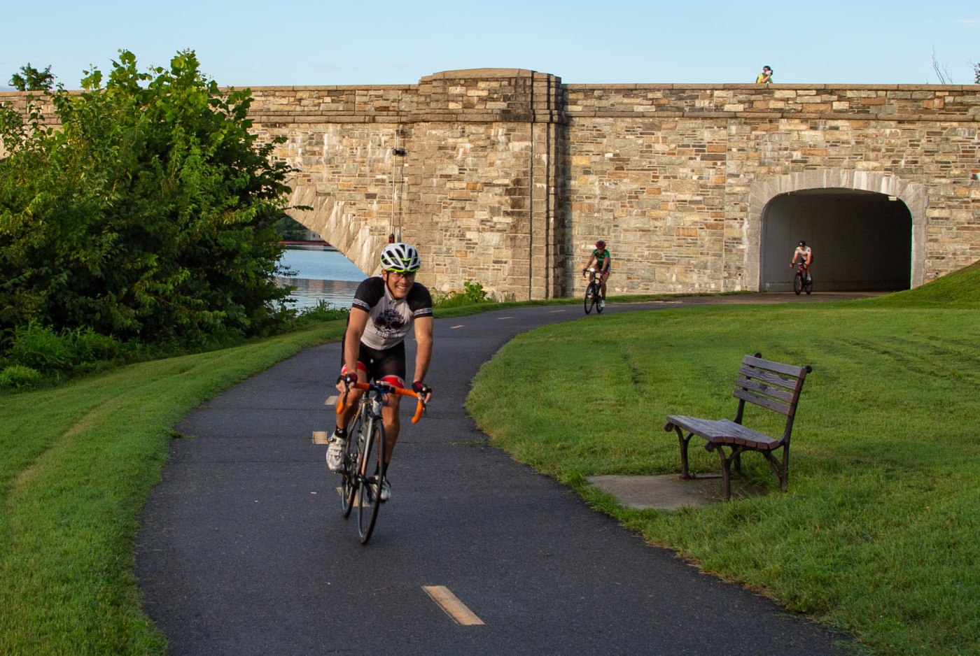 The first section of this trail had been opened just a little over a year earlier. That section (spanning about six miles [9.7 kilometers]) was constructed between the George Mason Memorial Bridge, which is one of the Potomac River bridges connecting Arlington with Washington, D.C.; and Slaters Lane in Alexandria. Originally known as the Alexandra Bike Trail, it was renamed the Mount Vernon Trail (MVT) at around the time that landmark became the route’s new southern endpoint.