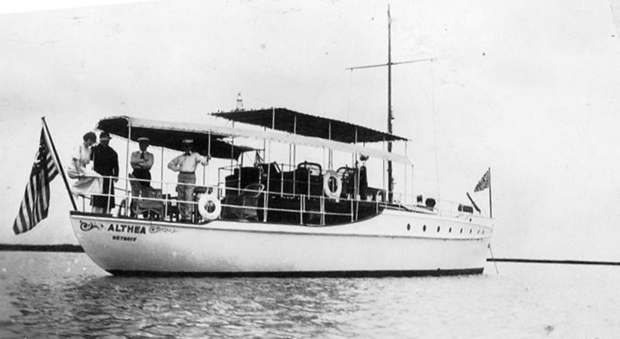 Nearly a month-and-a-half after the United States entered World War I on the side of the Allied Powers, a private motorboat named Althea was commissioned into the U.S. Navy under the command of Ensign E.L. Anderson of the U.S. Naval Reserve Force. This vessel had been acquired from James H. Moore. Althea was built for him in 1907 by Williams-Whittlesey Motor Boat and Shipbuilding Company in New York City. The Navy’s formal purchase of this 60-foot (18-meter)-long motorboat did not actually take place until a little over a month after she was commissioned.
