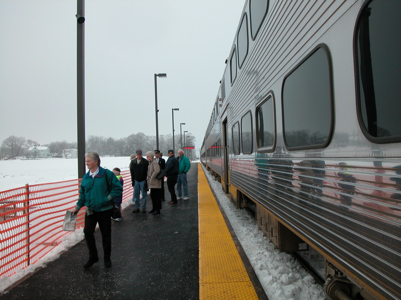 William Presecky, a reporter for the Chicago Tribune, covered the overall enthusiasm surrounding the return of commuter rail service to Elburn on January 23, 2006. “After a 50-year hiatus, commuter rail service to Elburn resumed before dawn Monday, kicking off a weeklong celebration of Metra improvement projects across the Chicago region,” recounted Presecky in an article appearing in the next day’s edition of the Chicago Tribune. “The popular Union Pacific West Line’s terminus was extended about 9 miles [14.5 kilometers] from [the city of] Geneva to Elburn at 4:48 p.m., when train No. 10 began its 43-mile [69.2-kilometer] trek eastbound to the Ogilvie Transportation Center in Chicago.”
