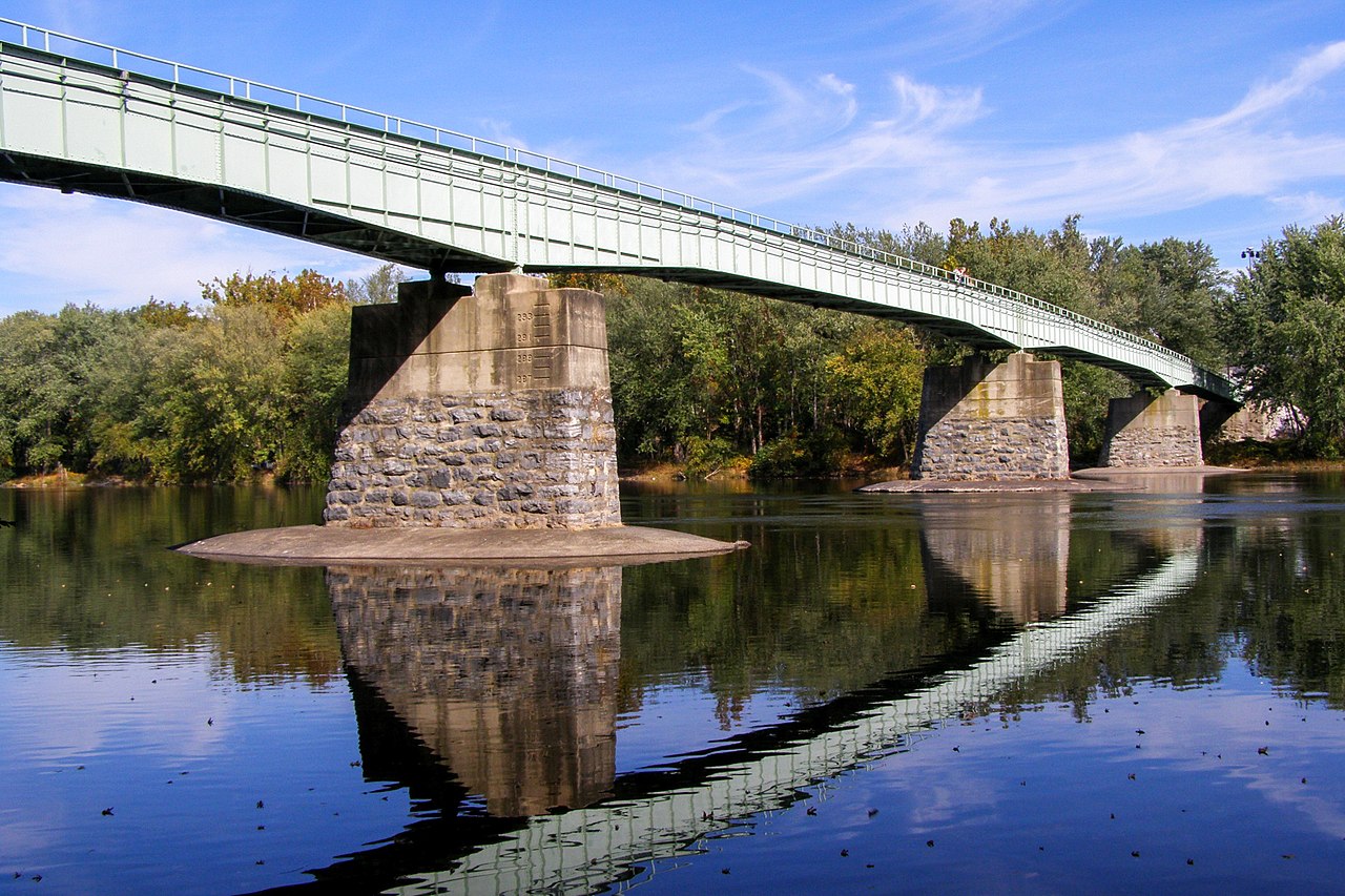 On a rainy Wednesday afternoon, a dedication ceremony was held for a pedestrian bridge crossing the Delaware River and connecting the borough of Portland, Pennsylvania, with the community of Columbia in Knowlton Township, New Jersey. This new structure replaced a covered bridge that had been constructed in 1869 and was destroyed by the remnants of Hurricane Diane in 1955.