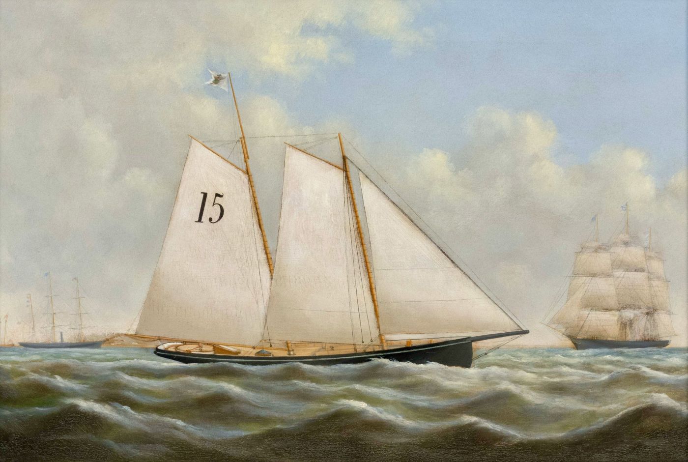 At eleven o’clock on a Monday morning, the pilot boat John D. Jones, No. 15, was launched into a section of the East River within the ward of Williamsburg in the city of Brooklyn (now one of New York City’s five boroughs). J.D. Jones had been built by J.B & J.D. Van Deusen, and her launch specifically took place at the firm’s shipyard at the foot of 16th Street. This pilot boat was named in honor of John Divine Jones (1814-1895), president of the Manhattan-based Atlantic Mutual Insurance Company.
