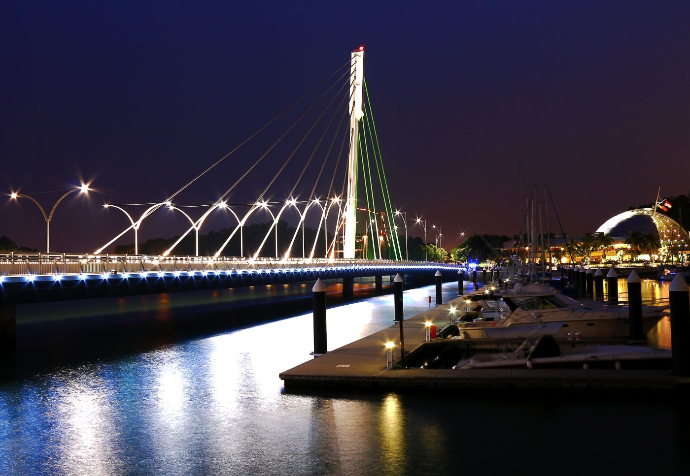 A bridge crossing Keppel Bay in the southernmost section of the Central Region of Singapore made its public debut. This bridge carries both motor vehicles and pedestrians between Keppel Island and the mainland. It also carries lines for water, electricity, and other essential services to Keppel Island. Measuring 820 feet (250 meters) in length, the structure holds the record as Singapore’s longest cable-stayed bridge.
