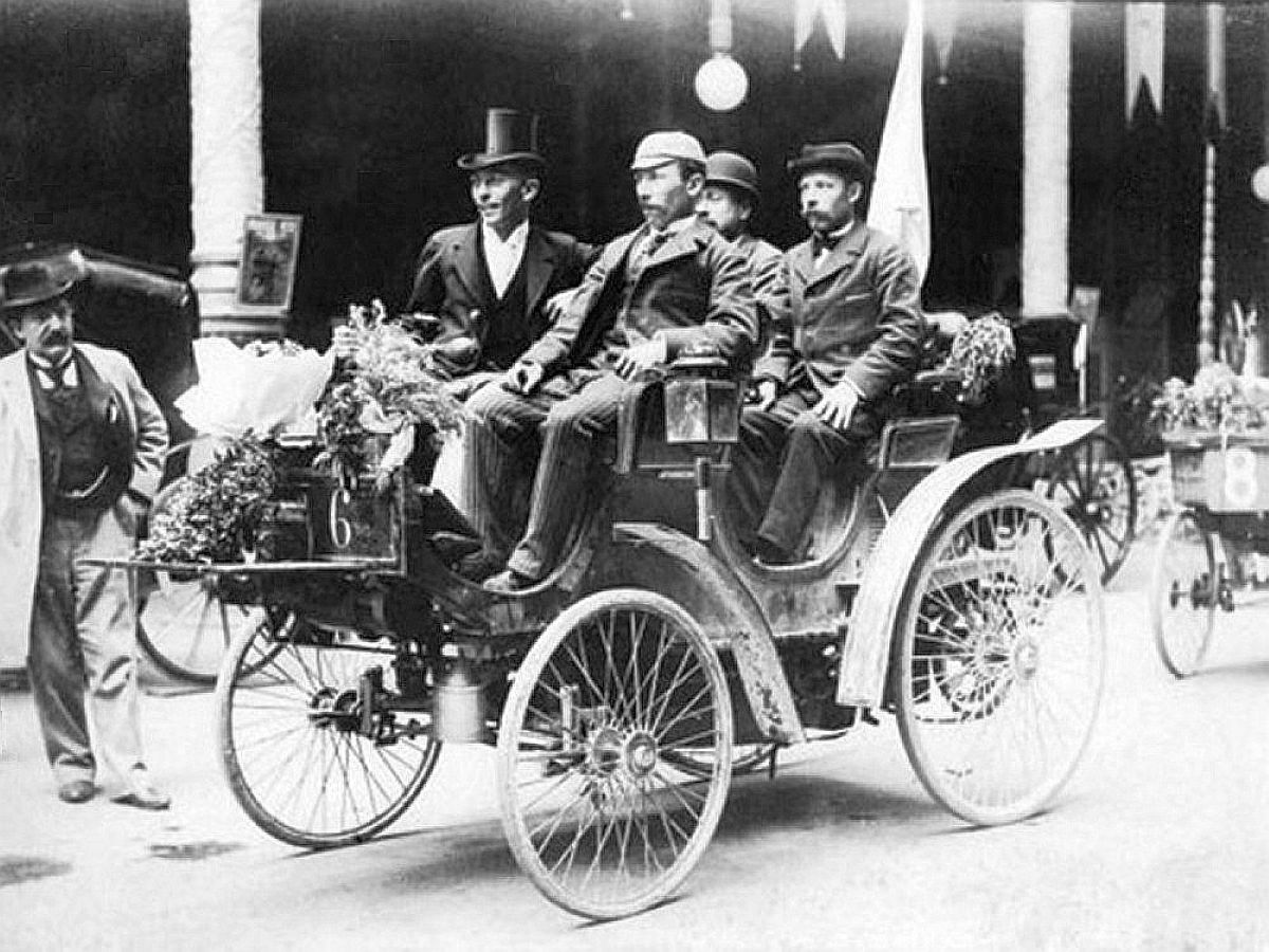 Five hours and 13 minutes later, French industrialist Paul Koechlin (1852-1907) crossed the finish line in Paris in a Peugeot-Daimler Type 7 Phaéton. (The attached photo of Koechlin in that car – along with three passengers – was taken during the race.)
