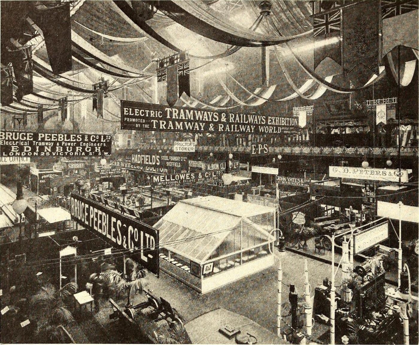 In the northern part of London, an international electric tramway and railway exhibition was opened in the Royal Agricultural Hall in the inner-city area of Islington. This event, which would continue until July 14, was the third of its kind to be held at that location. The first of these exhibitions took place from June 30 to July 11, 1900, while the second one was held between July 1 and 12, 1902.