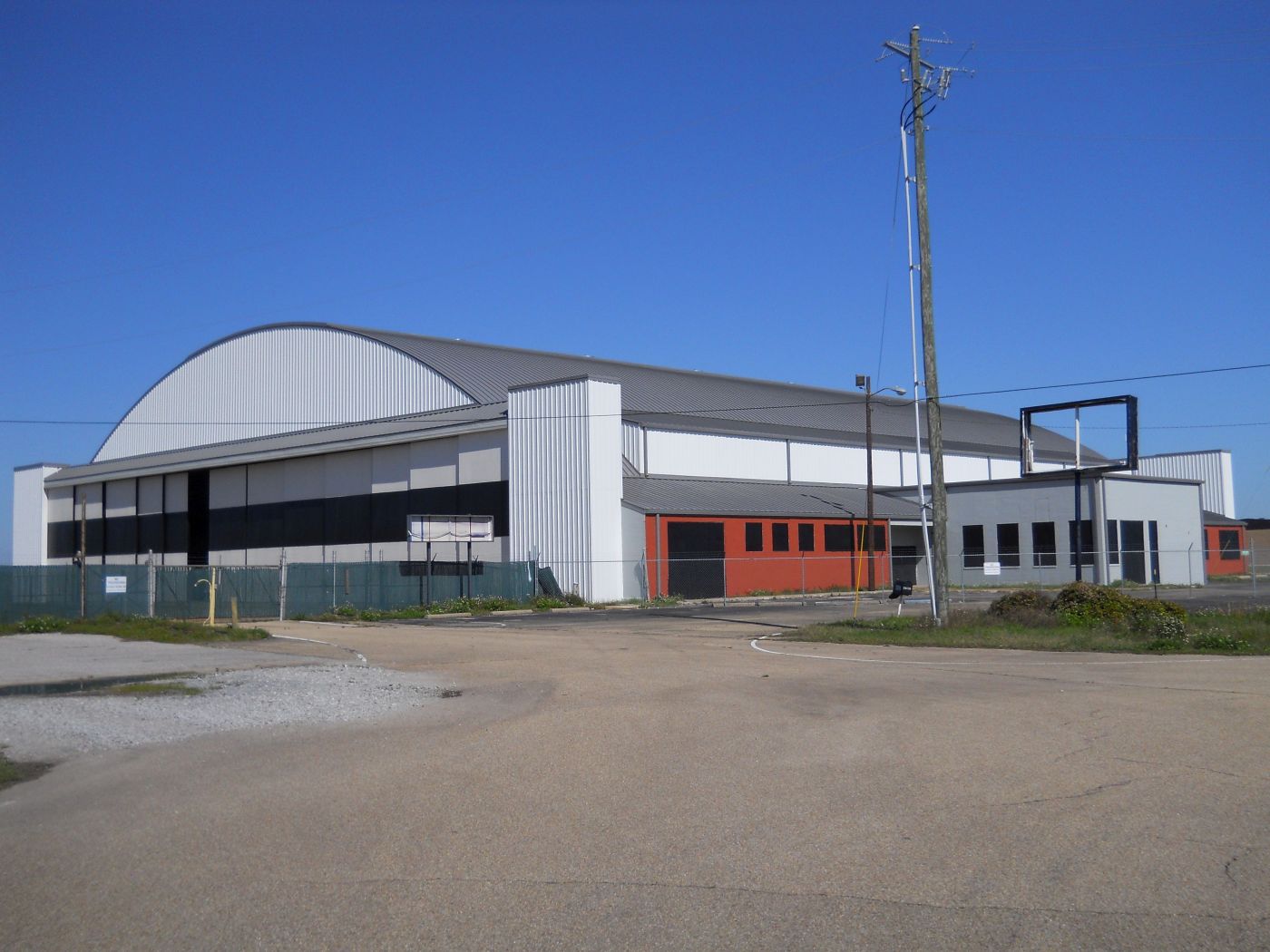 The hangar shown in the accompanying 2016 photo was built as part of the Gulfport Army Airfield in 1944-45 to accommodate the Boeing B-29 Superfortress. This hangar was added to the National Register of Historic Places in 2011 and, the following year, designated as a Mississippi Landmark.