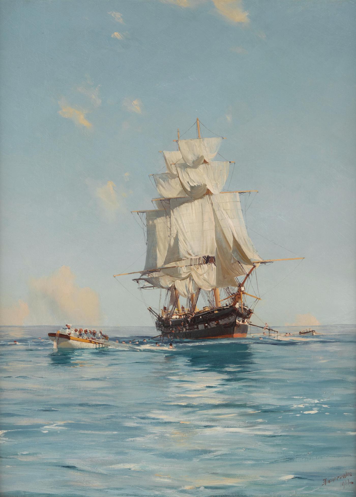 The attached image featuring Clio was painted in 1902 by marine artist Thomas Somerscales, who served on board the ship as a naval schoolmaster from 1864 to 1868.