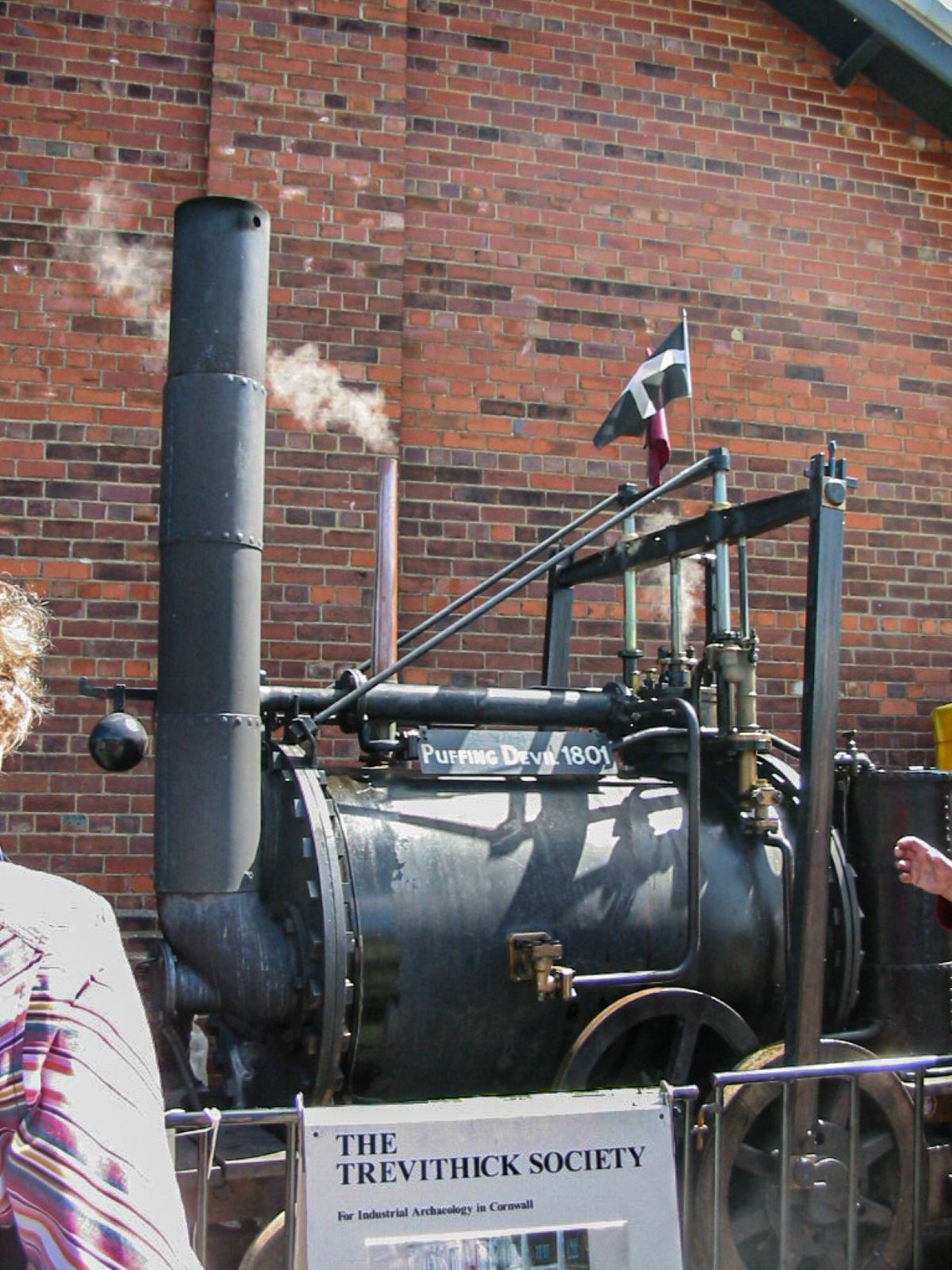 A strong case can be made, as a matter of fact, that Trevithick’s contributions to road and rail transportation helped pave the way not only for the Industrial Revolution throughout the 19th century but also present-day surface vehicles across the globe. (The accompanying photo of a replica of the Puffing Devil was taken in 2004.)