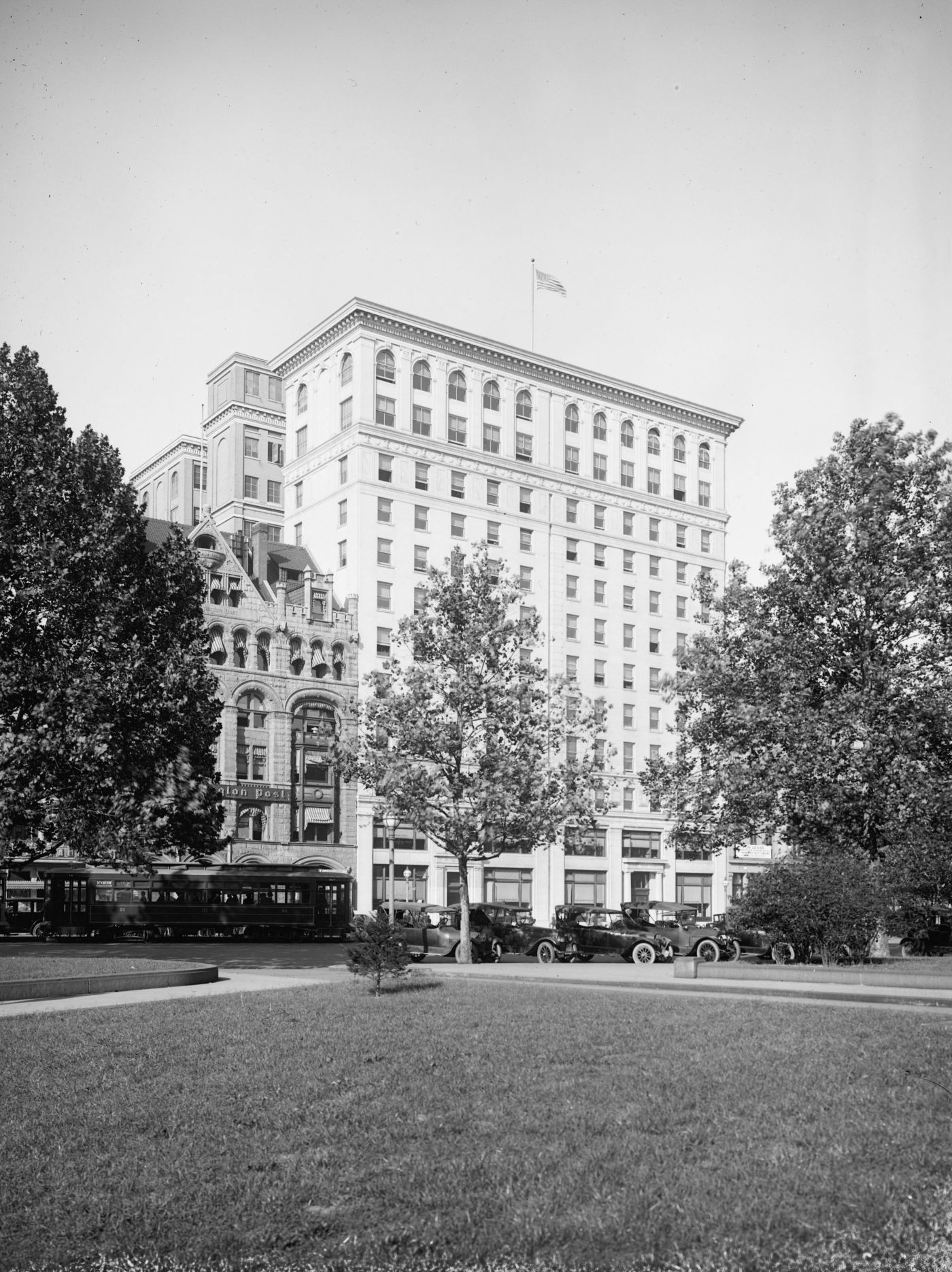 AASHO’s office could be found in Room 639 of the Munsey Trust Building, and the association would remain there until Markham moved its operations to the newly opened National Press Building in 1927. The association’s headquarters staff worked there for approximately a half-century before moving to the Hall of States in the Capitol Hill neighborhood. The Hall of States ended up serving as AASHTO’s headquarters for 43 years. As for the Munsey Trust Building, it was demolished in 1982. (The attached photo of this building was taken sometime during the 1920s.)