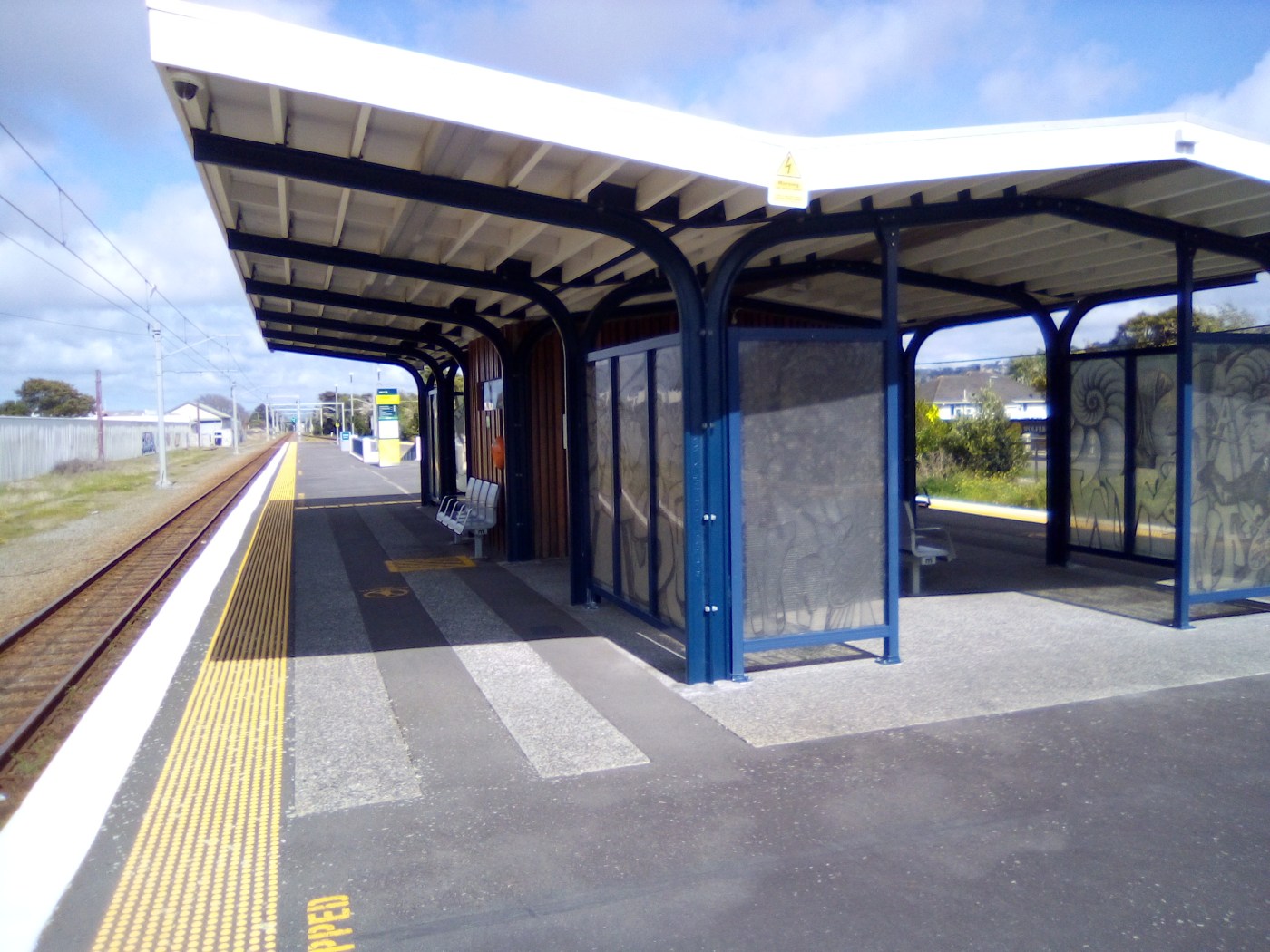 In the years since its debut, Naenae railway station — depicted in the accompanying photo taken in 2021 — has undergone a couple of major renovations. The most recent of these was a comprehensive makeover carried out in 2023-24. The key results of this makeover included cultural designs that were created by sculptural artist Len Hetet; a fresh paint job for the entire facility; and a public announcement system.
