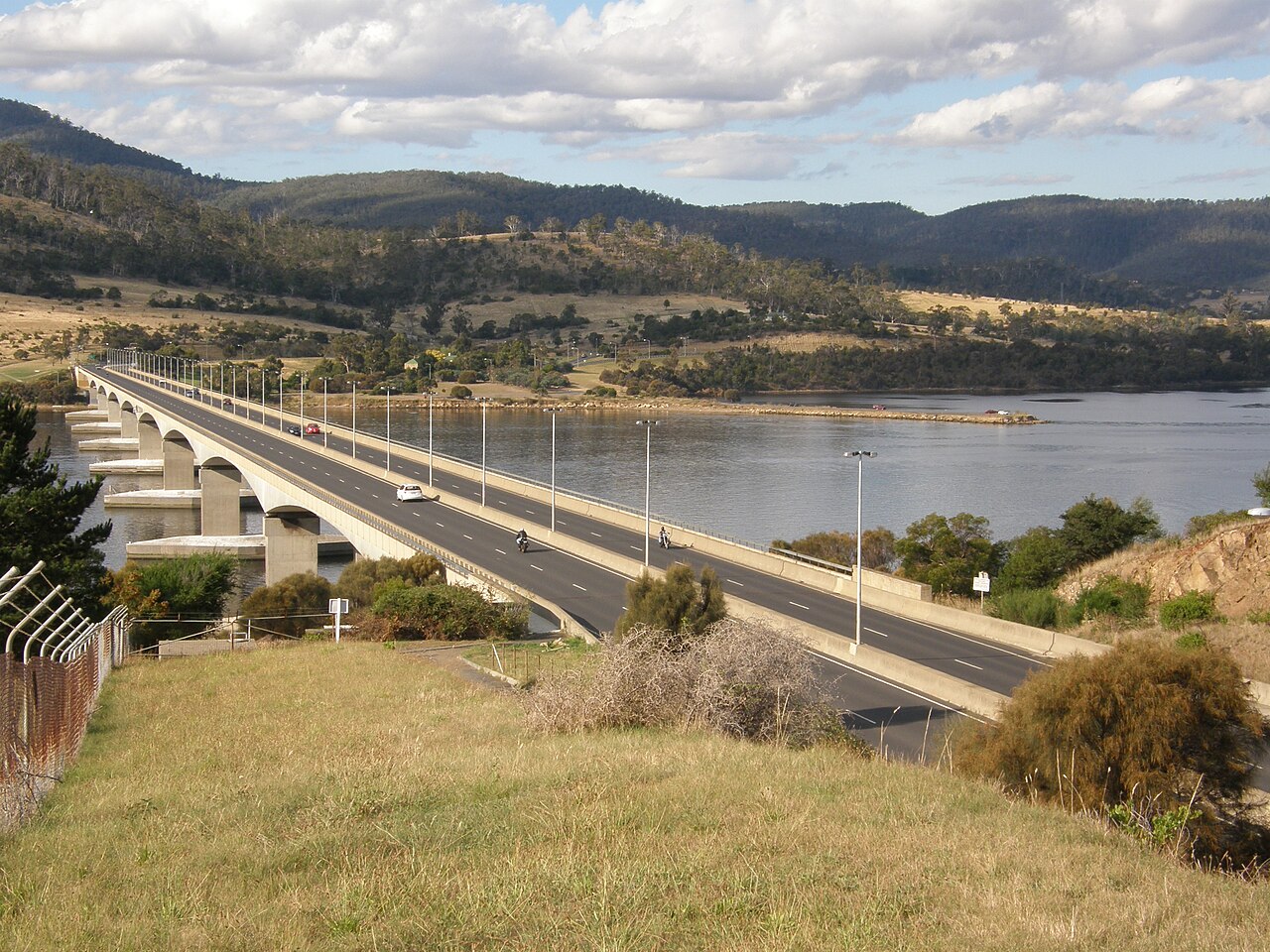 The Bowen Bridge was officially opened a little over nine years after that disaster. Bob Hawke (1929-2019), who served as prime minister of Australia from 1983 to 1991, presided at this dedication. In his remarks that day, he underscored both the safety and aesthetics of the new bridge. Hawke said, “The designers of the bridge were careful that is should not only be strong enough to withstand a direct collision by a ship but it should also blend in with the surrounding landscape.” Hawke further stated, “You will agree that the graceful design and the pleasant curves of the road approaches all combine to enhance the scenic view of this part of the Derwent Valley.”