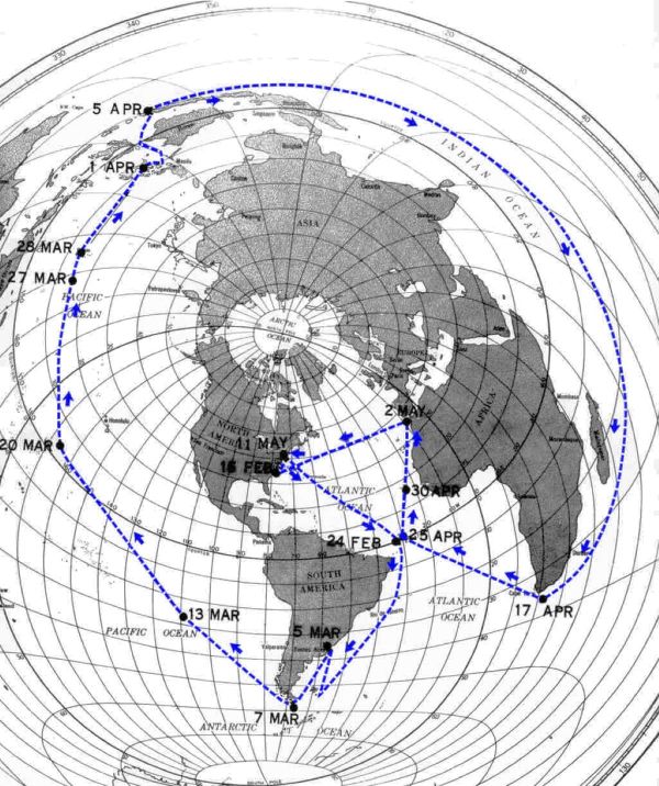 April 25, 1960 A global circumnavigation milestone took place when the U.S. Navy submarine USS Triton (SSRN-586) completed the first submerged voyage around the world. The U.S. Navy’s code name for this pioneering circumnavigation was Operation Sandblast. Triton, which had been commissioned the previous November and was under the command of Captain Edward L. “Ned” Beach,... Continue Reading →
